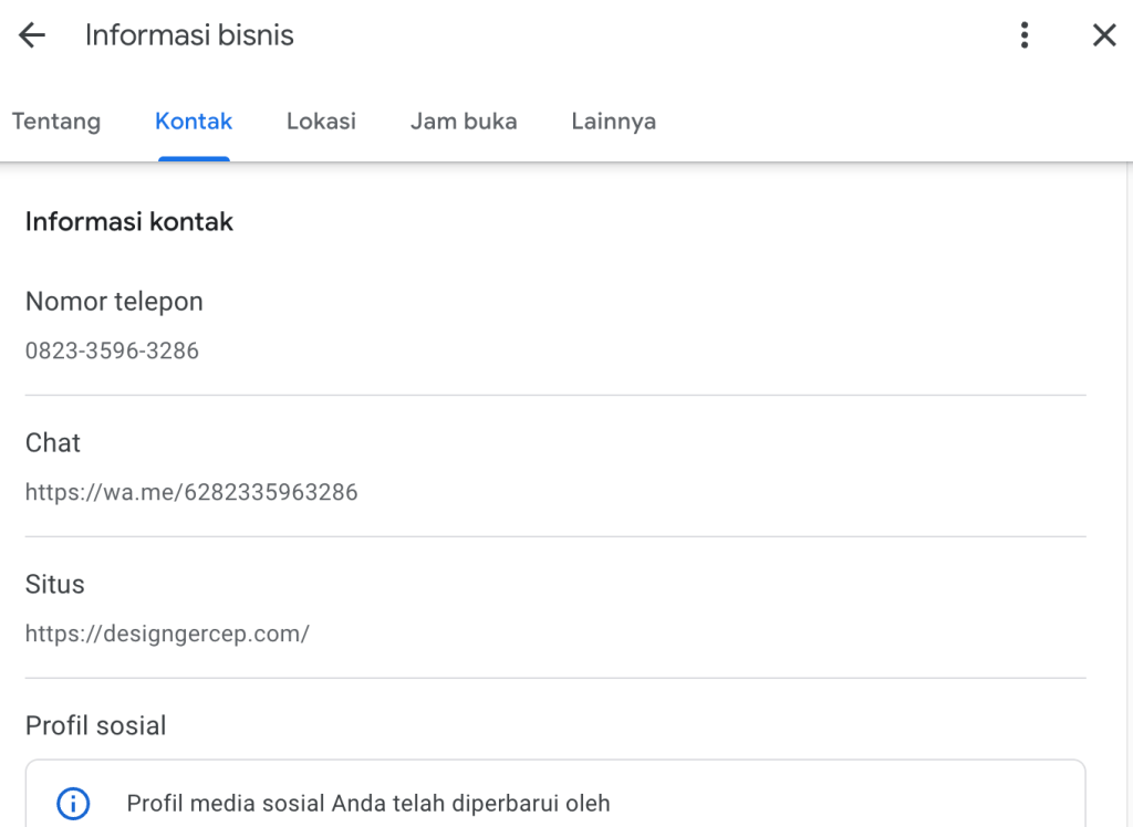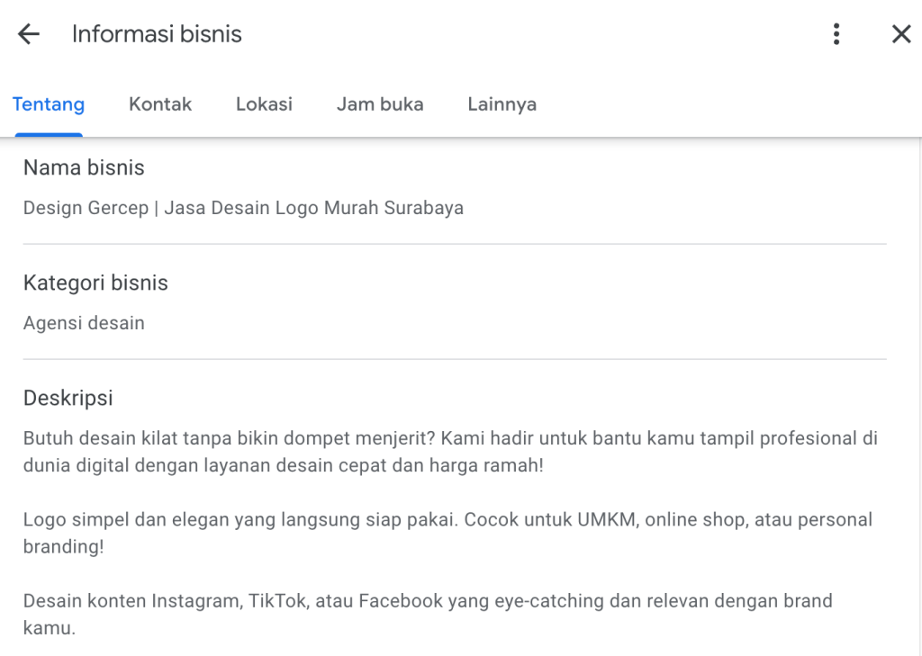 Dengan melengkapi data, membuat listing lebih relevan dan memudahkan calon pelanggan menemukan layanan spesifik Anda.