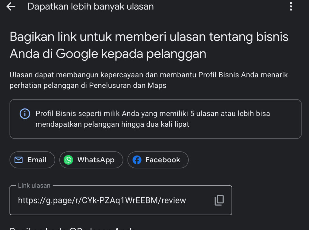 Itu membuat para pelanggan Anda akan lebih secara sukarela memberikan ulasan di Google Bisnis, sebab ulasan mereka merasa dihargai dengan loyal diskon tersebut.