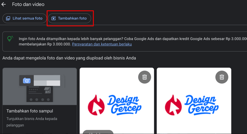 Mengunggah foto lokasi, interior, produk, tim, dan proses layanan merupakan poin wajib untuk memaksimalkan Google Bisnis Anda.