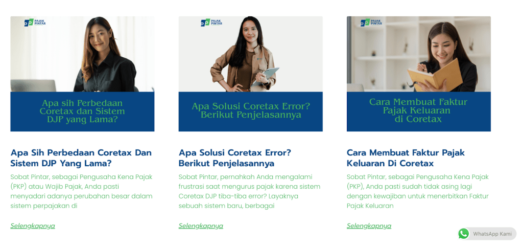 Misalnya panduan yang ada di salah satu klien kami, Pajak Pintar. Selain membahas PKP, pembahasan seputar perpajakan yang sesuai dengan niche yang sedang dioptimasi.